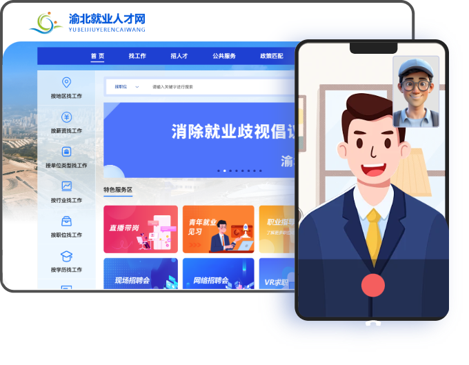 求职招聘洽谈区、多功能特色区、职业帮扶服务区、灵活就业介绍区、公益服务宣传区,5大功能区+系统平台赋能;